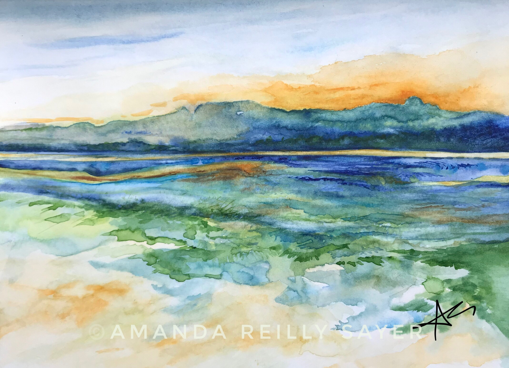 This painting, with all of its transparency, shows a bit better in person. Even so, the color palette soothes me, as I hope it will you.