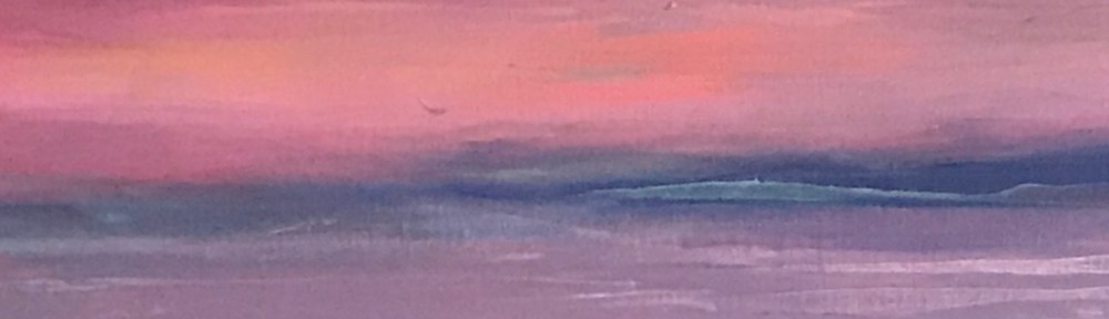 I’ve grown comfortable with blues and greens, a color palette that soothes me. But mixes of red tones have found their way into a couple of recent paintings, perhaps inspired by the spectacular sunsets of late.