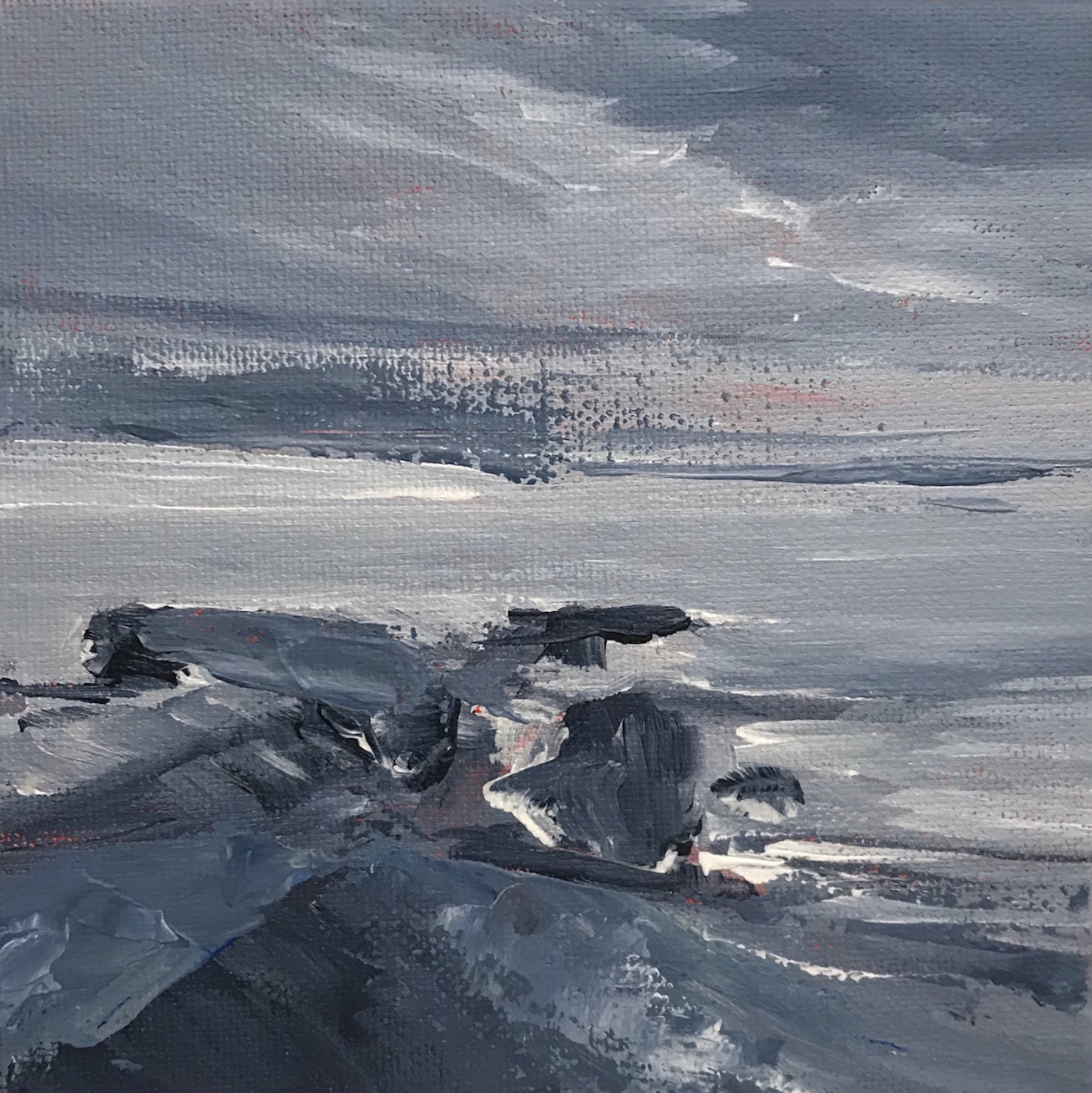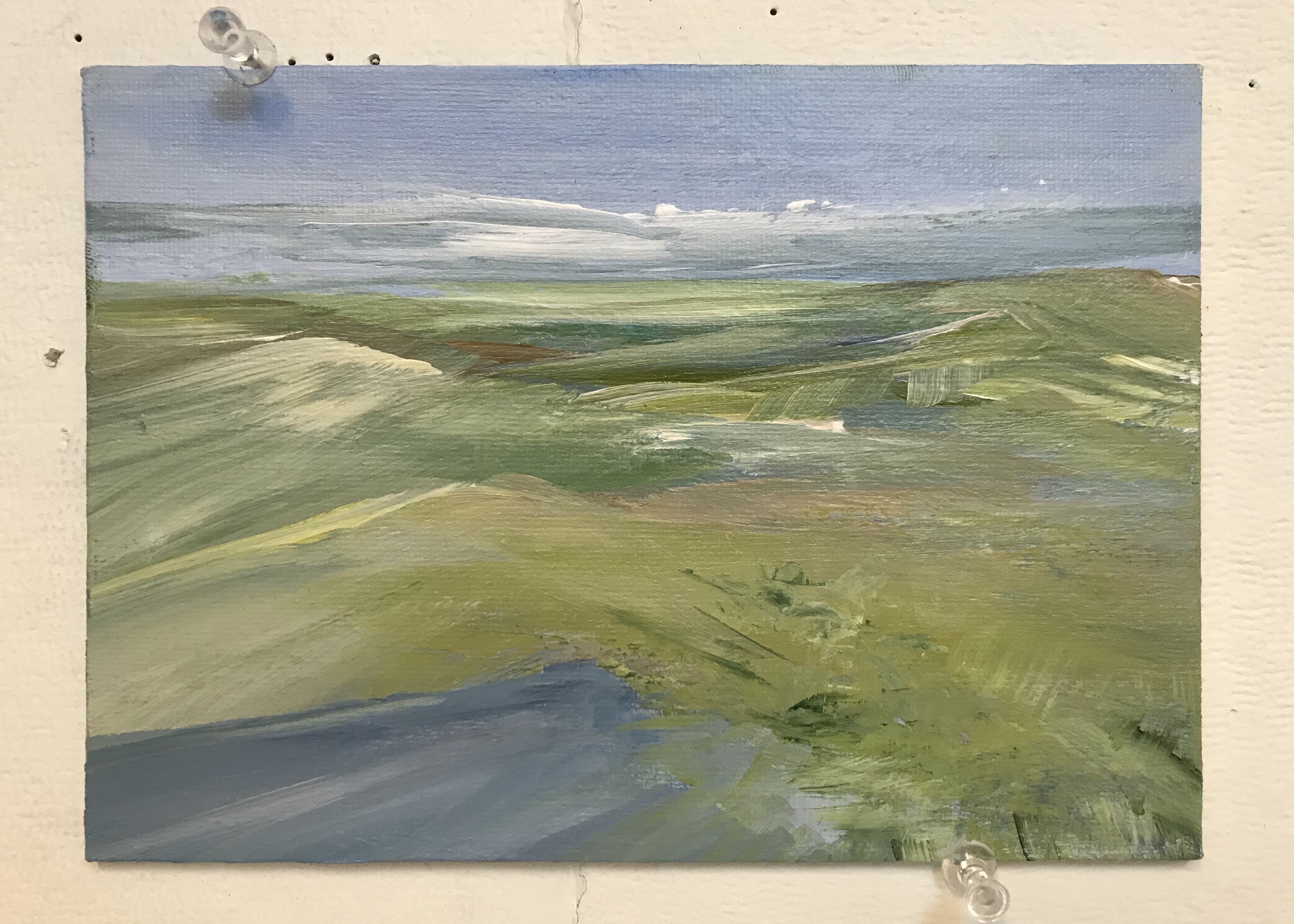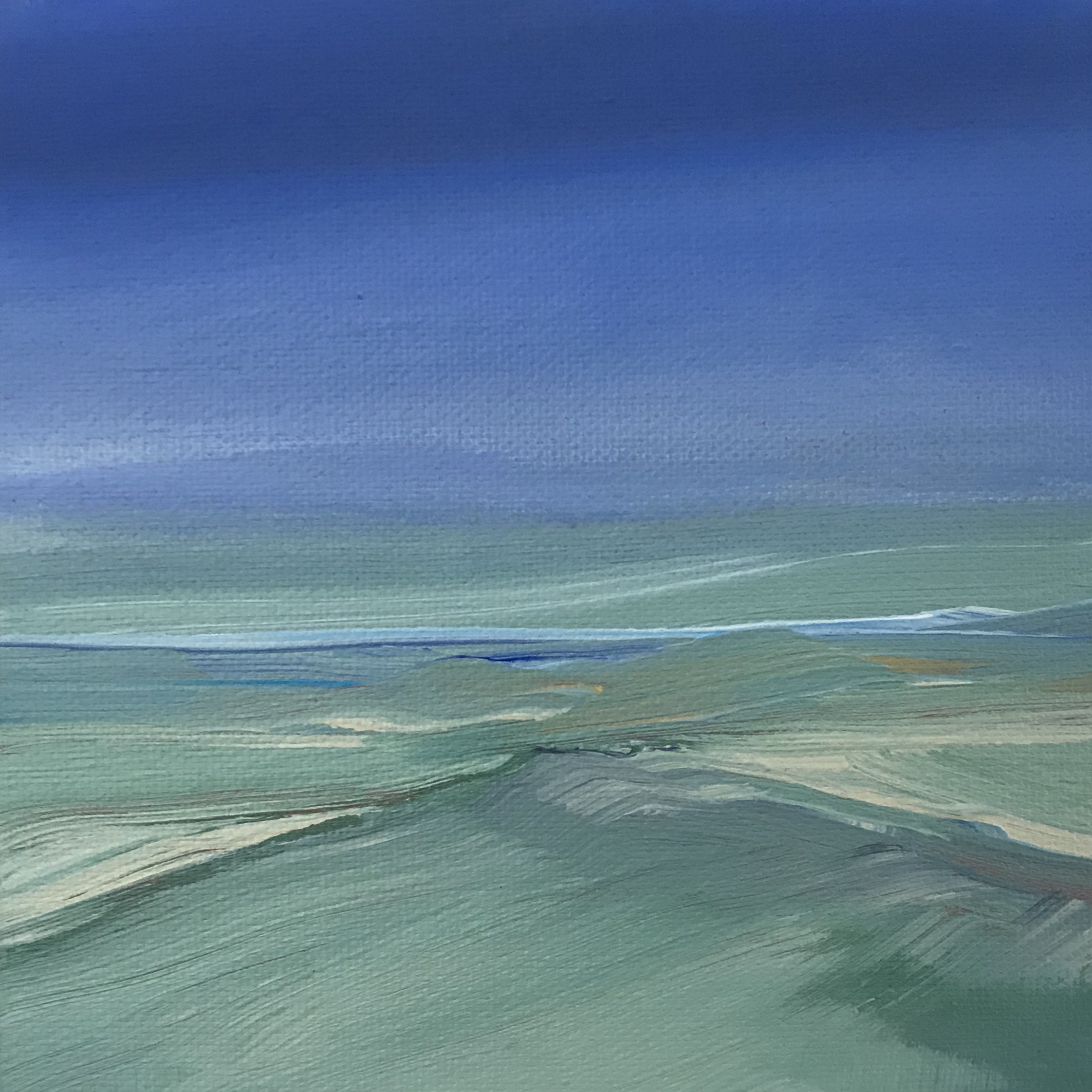 as i look at the sample of paintings you are sharing here, i will say that to me they seem to be some of your best work. why? the colors seem more vibrant, the paintings somehow more thoughtful and coherent. for example, the beautiful one on the upper left while not unlike in composition to some of your others, still seems to have more natural appearin lifng gradations of color and activity. it’s a less a passive rendition of a photograph feel than it is a video of it. the activity on the right side of the horizon line also draws interest and reflects a sub-theme.