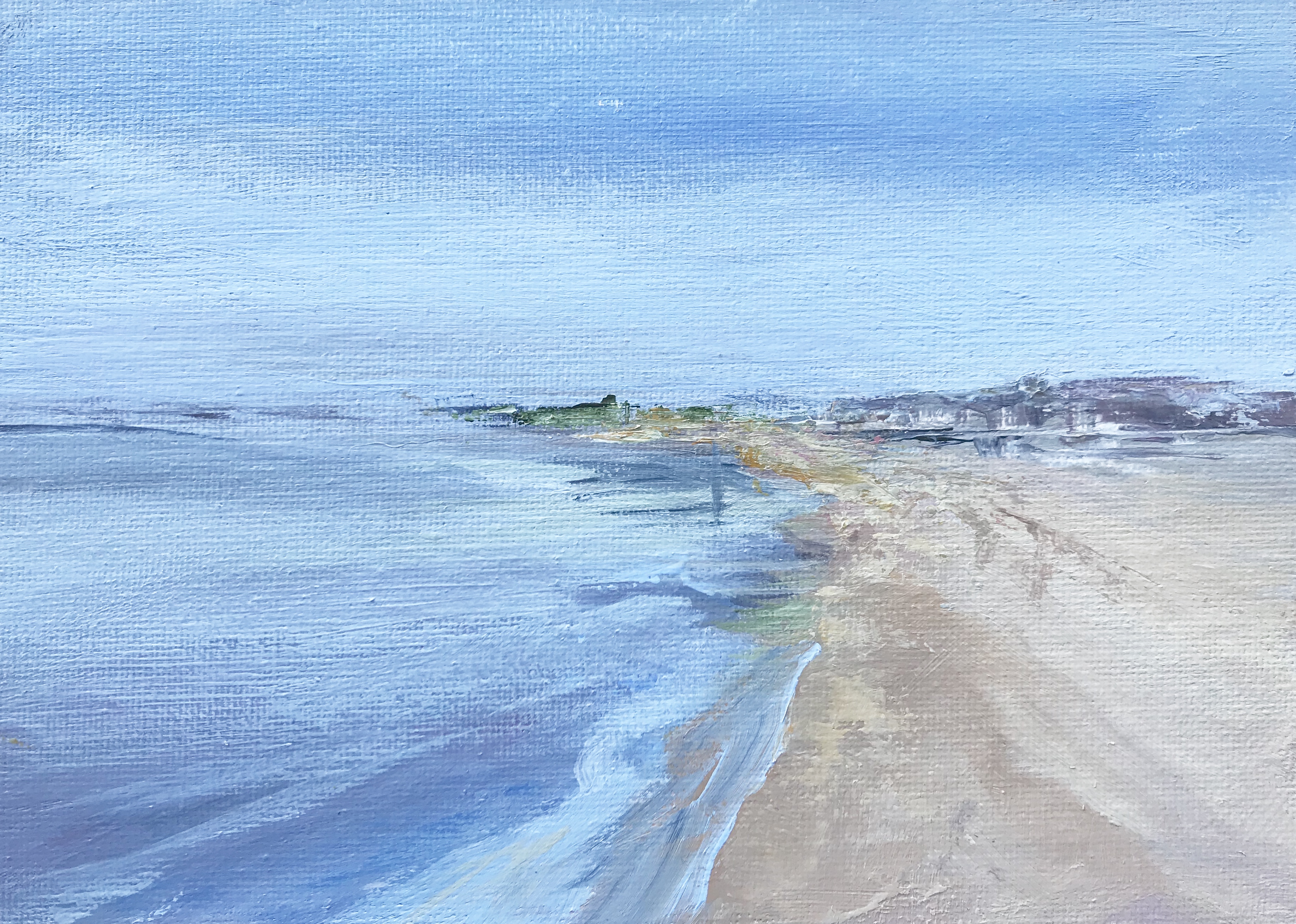 Below is a sample of the works I created during the painting workshop, in rough order of their making. Several were painted en plein air (as the tide schedule and my sun sensitivity allowed). Some were made from a photo made during the week. Others are an expression of my imagination. I’m accustomed to painting in a certain way and proud that I challenged myself to move out of my comfort zone, to experiment with different surfaces and possibilities.